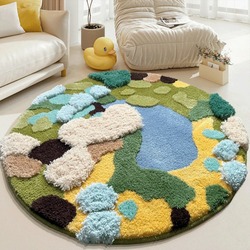 New Thickened Creme Forest Design Tapete 3D Tapete Circular para Sala de estar Quarto Bedside Robot Aspirador Compatível