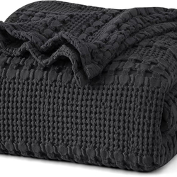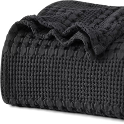 Premium Queen Size Waffle Weave Blanket 100% Algodão Soft Respirável Design Ideal para o Verão Bedding & Home Decor Preto