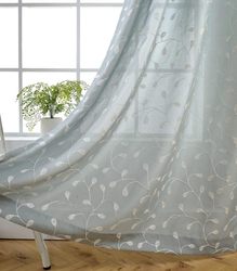 Bordados florais azuis Sheer conjunto de 2 cortinas para sala de estar e quarto 54x84 polegadas leves tratamentos janela elegante