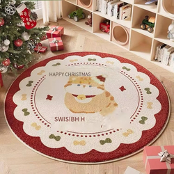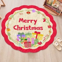 Luxo Natal Rodada Tapete com 3D Bordado Festive Decor Short Pile Anti Slip Elf Bar Light Home Decoração