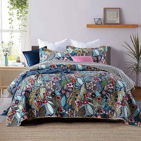 Bohemian Floral King Size Quilt Set Coverlet reversível leve com Patchwork Design para todas as estações