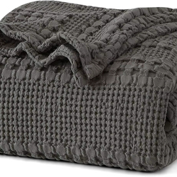 Luxuoso King Size Waffle Weave Blanket 100% Algodão Cinza Carvão Macio & Respirável para Decoração De Cama Elegante